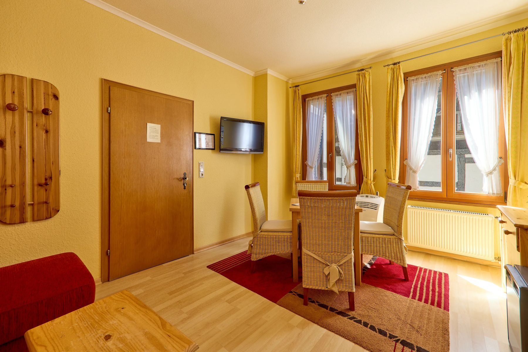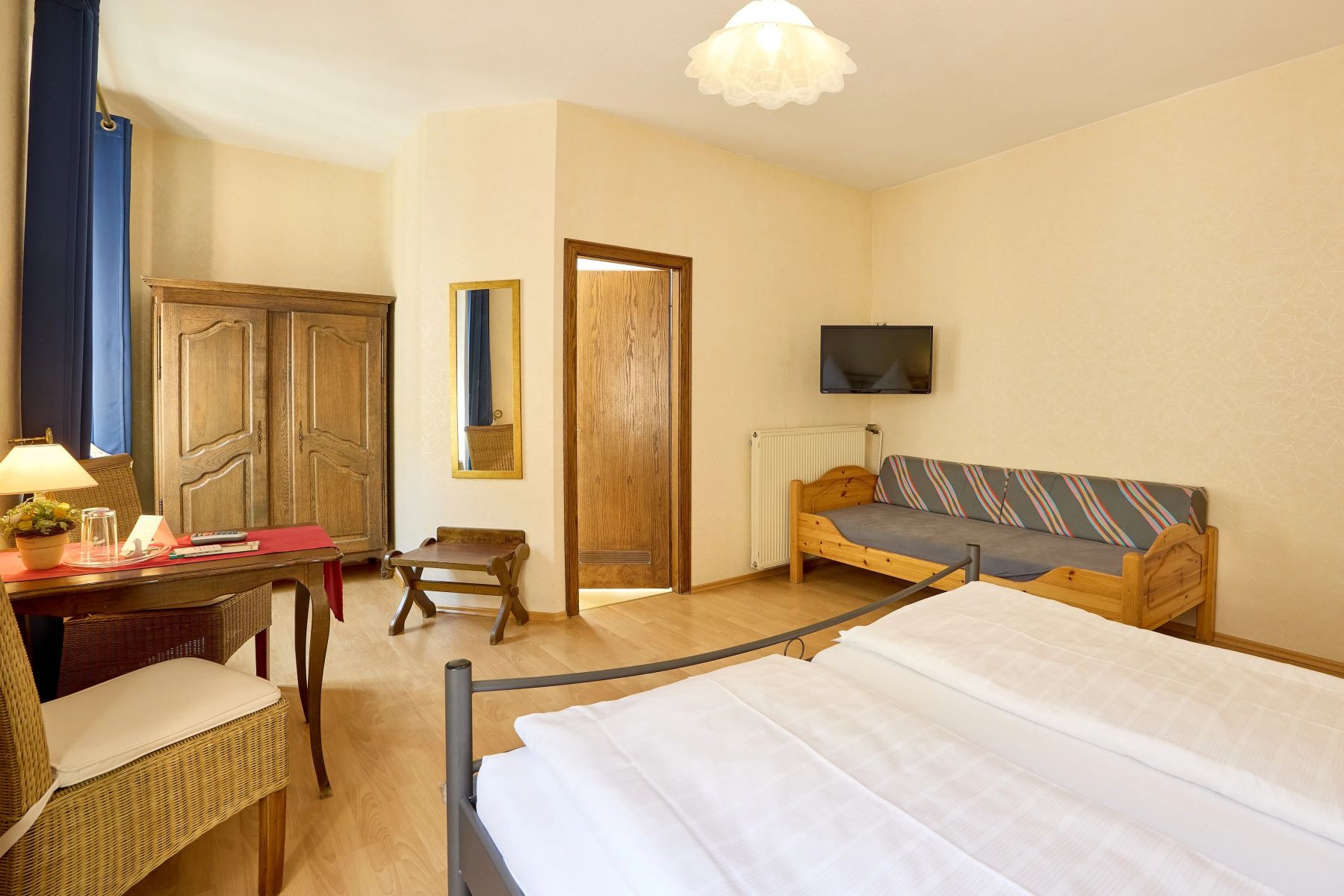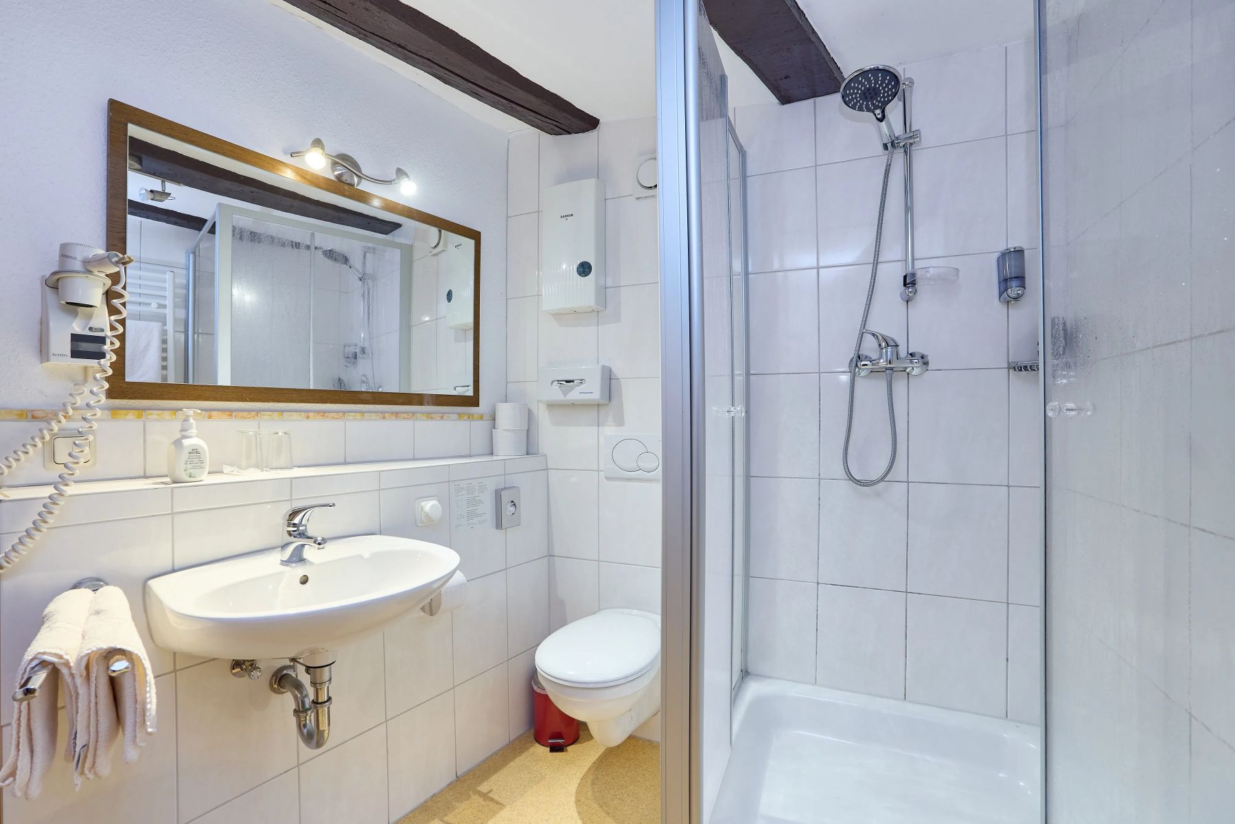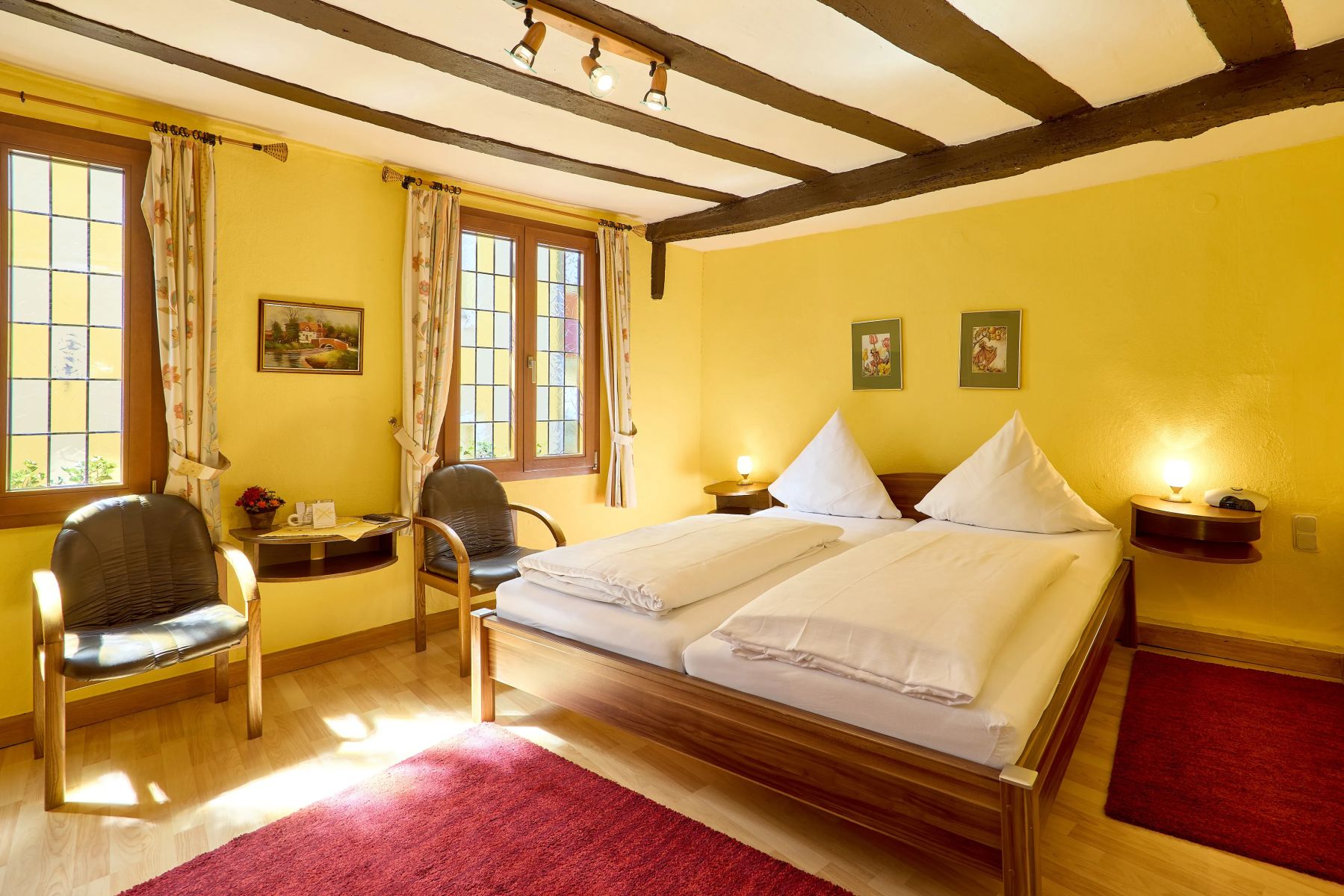 All unsere Hotelzimmer sind Nichtraucherzimmer und mit Dusche/WC, Föhn, Safe, Kabel-TV sowie kostenfreiem WLAN ausgestattet. Vier Zimmer verfügen zusätzlich über eine Klimaanlage. Für die Kleinsten stellen wir auf Wunsch ein Kinderbett bereit (bis ca. 2 Jahre, 11 €). Bitte beachten Sie, dass unser über 700 Jahre altes Haus keinen Aufzug besitzt. Für Fahrräder gibt es abgeschlossene Stellplätze und eine Ladestation. Am Haus stehen insgesamt 4 Parkplätze zur Verfügung. Alternativ können Sie zum Be- und Entladen in der Ladezone am Gestade 6 halten. Anschließend händigen wir Ihnen einen Parkschein aus, mit dem Sie am Moselufer parken können.